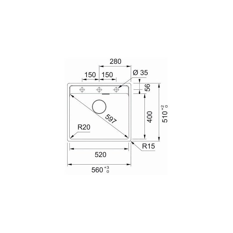 Dimensiuni chiuveta : 560x510mm