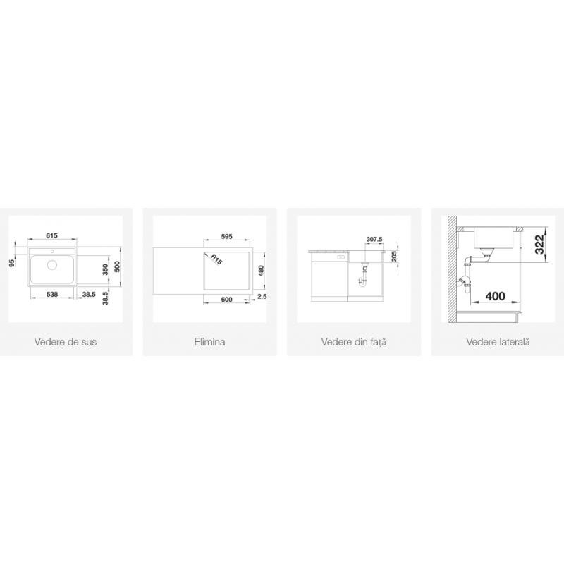Chiuveta incorporabila inox, dimensiuni 615x500mm, adancime 205mm, orientare reversibila, accesorii incluse