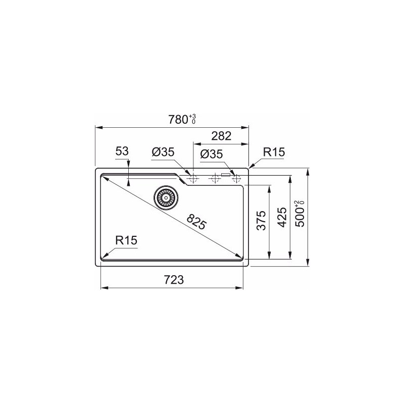 Chiuveta incorporabila cu 1 cuva mare fara picurator, dimensiuni chiuveta 723x425mm, adancime cuva 230mm, accesorii incluse pentru montaj, culoare negru mat, 3 gauri pre-gaurite, garantie 15 ani