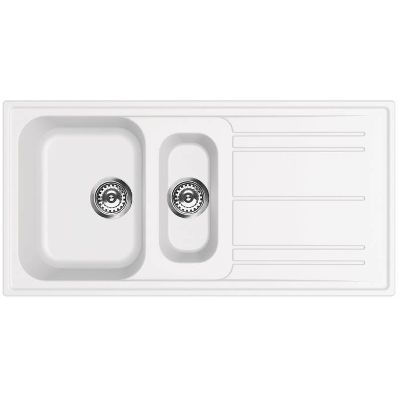 Chiuveta incorporabila smeg, cuva mare si cuva mica, adancime cuve 210mm/170mm, orientare reversibila, antibacterian, anti-zgarieturi, usor de curatat, 2 gauri pre-gaurite, accesorii montaj incluse (cleme de prindere, sifon), culoare alb