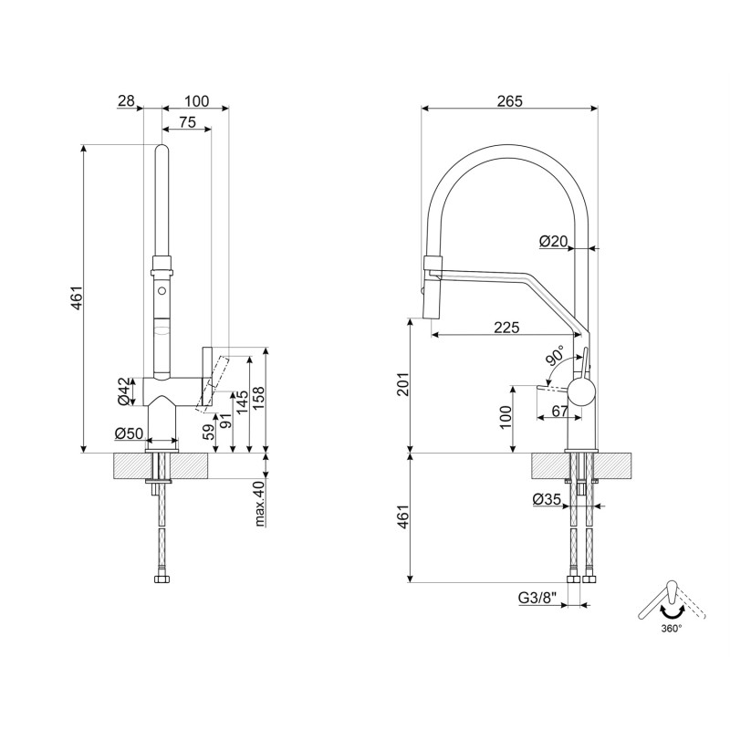 Baterie bucatarie Smeg, monocomanda, cartus ceramic, semi-profesional, gura din silicon, material alama, accesorii incluse, culoare negru