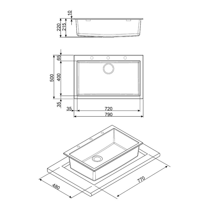 Chiuveta incorporabila Smeg, 1 cuva mare fara picurator, dimensiuni 790x500mm, adancime cuva 210 mm, material compozit, antibacterian, se monteaza pe blat , accesorii montaj incluse, culoare alb