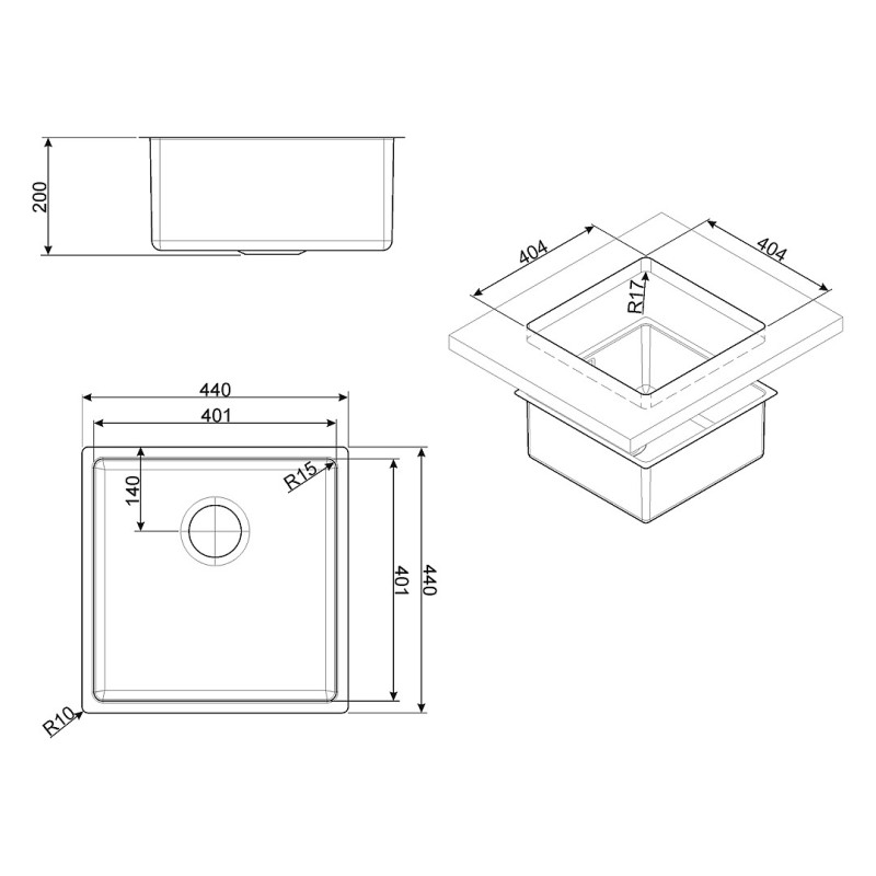 Dimensiuni chiuveta : 440x440 mm