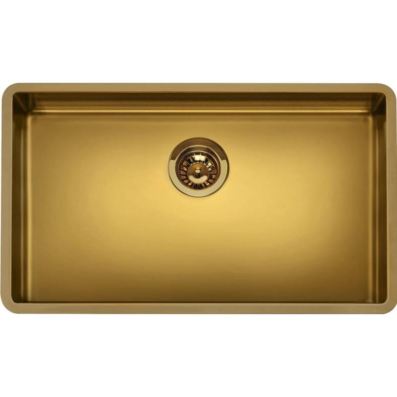 Chiuveta bucatarie Smeg, 1 cuva fara picurator, dimensiune cuva 750x440mm, adancime cuva 200mm, finisare PVD periat, montare sub blat, preaplin, culoare alama