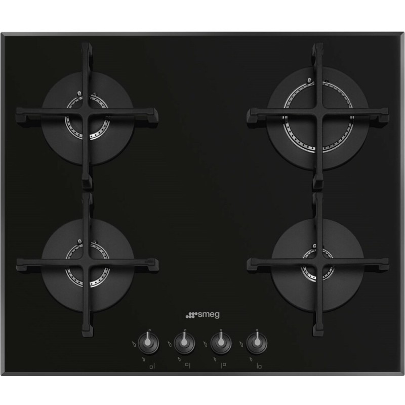 Plita incorporabila pe gaz Smeg Linea - PV164B3, 60 cm, sticla neagra