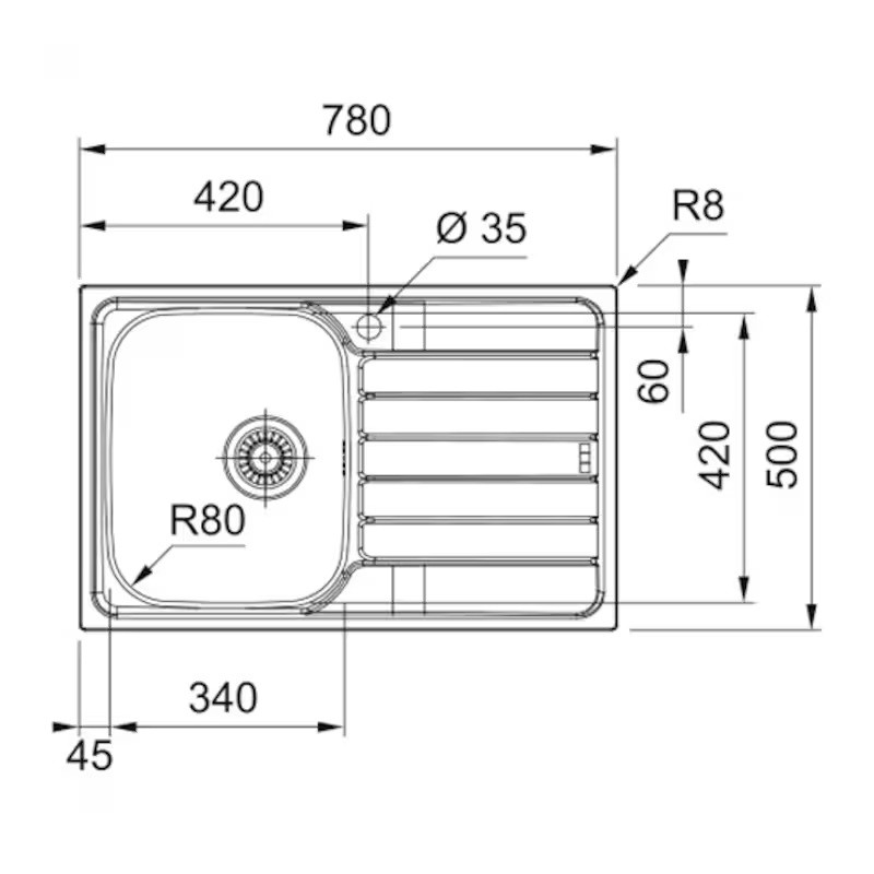 Dimensiuni chiuveta :780x500 mm