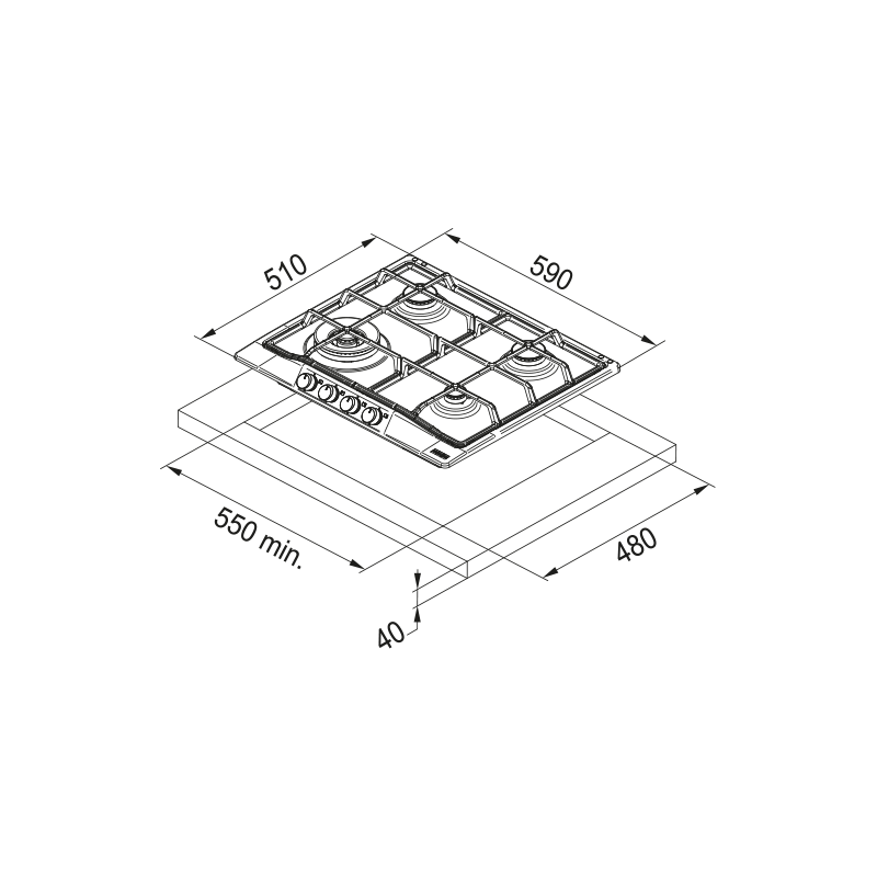 Plita incorporabila pe gaz